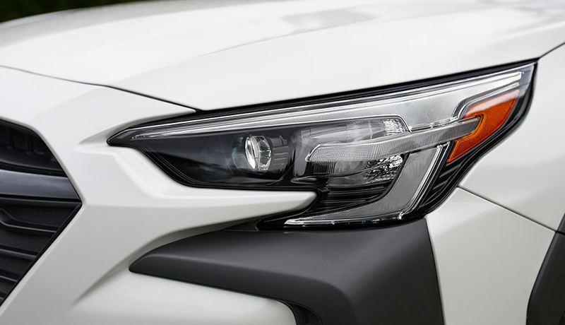 Phần đầu xe được trang bị đèn pha LED tích hợp dải đèn chạy ban ngày, có đôi chút tương đồng với các xe Subaru khác. Lưu ý rằng đèn pha tự động điều chỉnh theo góc lái SRH cho phép các tia sáng đi theo đầu vào lái của bạn. Nếu bạn bẻ lái sang bên phải, tia sáng của đèn pha cũng sẽ đi theo hướng đó. Lưới tản nhiệt phía trước có điểm nhấn màu bạc trong khi cản xe tích hợp đèn sương mù LED và được trang trí bằng tấm ốp cá tính.