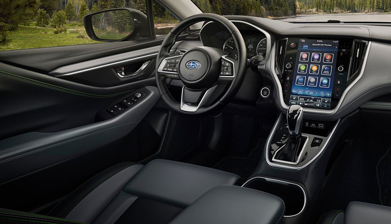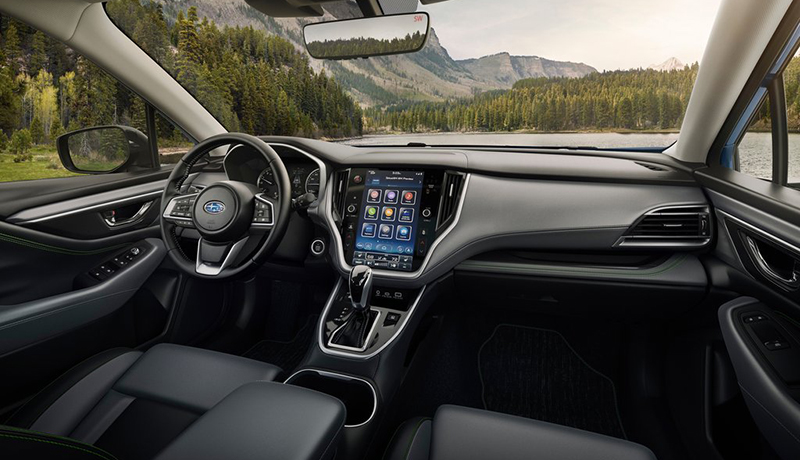 Bên trong, Subaru Outback Touring tận dụng các trang bị sang trọng từ trong ra ngoài, bao gồm da Nappa, các đường gờ màu đen bóng cao cấp cho các trụ, tay nắm cửa trang trí mạ crôm và gương chiếu hậu mạ sa tanh.